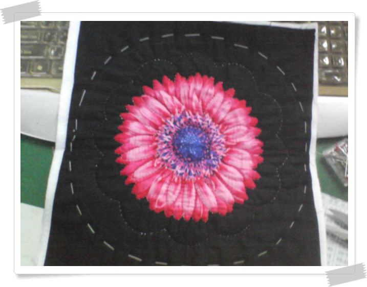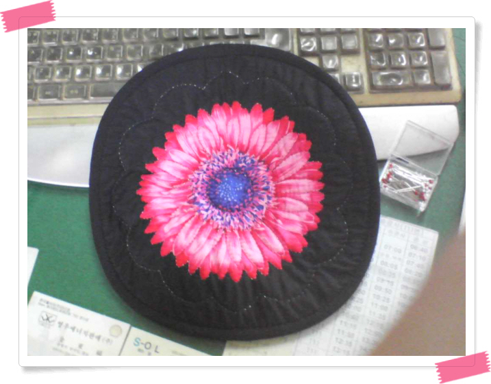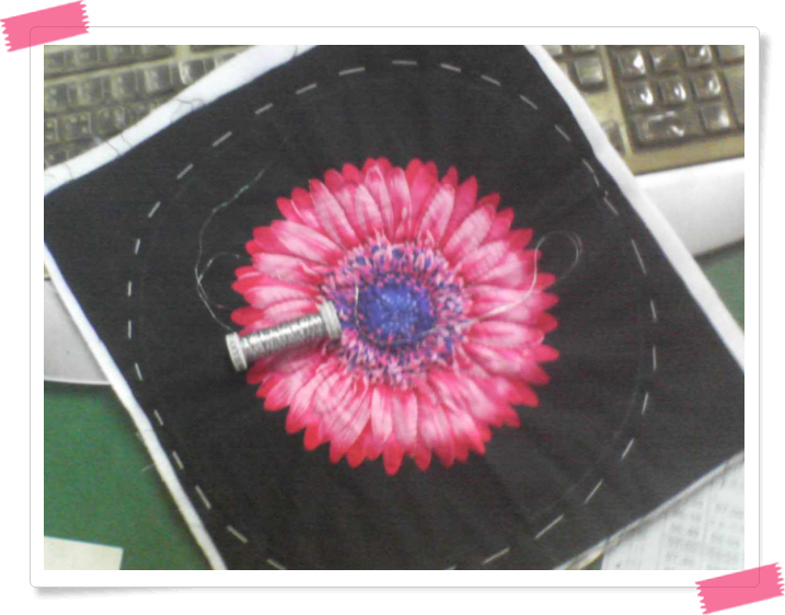 # 이렇게 꽃 문양과 꽃 둘레를 구터만 금사를 이용해 퀼팅했네요.