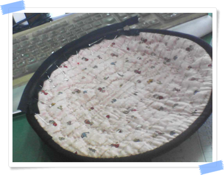 # 안감-압축솜-겉감을 순서대로 놓고 시침질을 합니다.