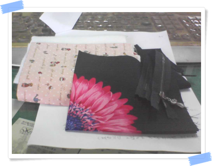 # 가방을 몇 개 주문했더니 사은품으로 딸려온 파우치 기본 재료입니다.